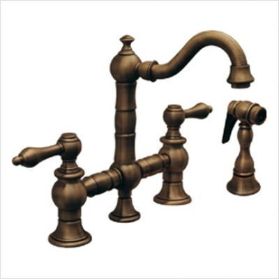 WHKBTLV3-9206-BN Finish: Brushed Nickel Features: -Entertainment or prep bridge faucet and side spray. -Vintage III collection. -Available in Antique Brass, Antique Copper, Brushed Nickel, Polished Chrome, Mahogany Bronze, Oil Rubbed Bronze, Pewter. -Bridge style bar faucet from the Vintage III Collection. -Features short traditional swivel spout with lever handles. -Solid brass side spray. -Works well with entertainment / prep sinks. -Spout length: 6.8''. -Spout height: 7.625''. -Centers: 8''. -Overall dimensions: 10'' H x 8'' W x 6.8'' D. For more information on this product please view the Specification Sheet(s) below: Vintage III Special Features
